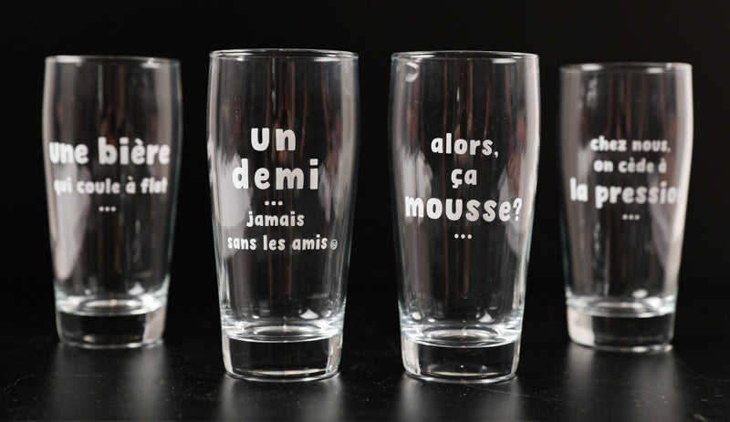 Savourez votre bière dans ces jolies verres. Les inscriptions feront leur effets au moment de l'apéritif.