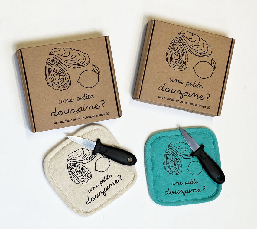 Découvrez notre joli coffret avec un protège main et un couteau à huitres.