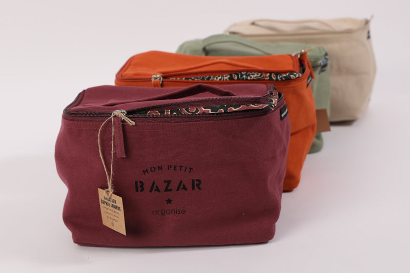 Vanity en coton avec fermeture éclair et doublure en Jaipur. Un petit compartiment pour vos objets de toilette, idéal pour partir en week-end.