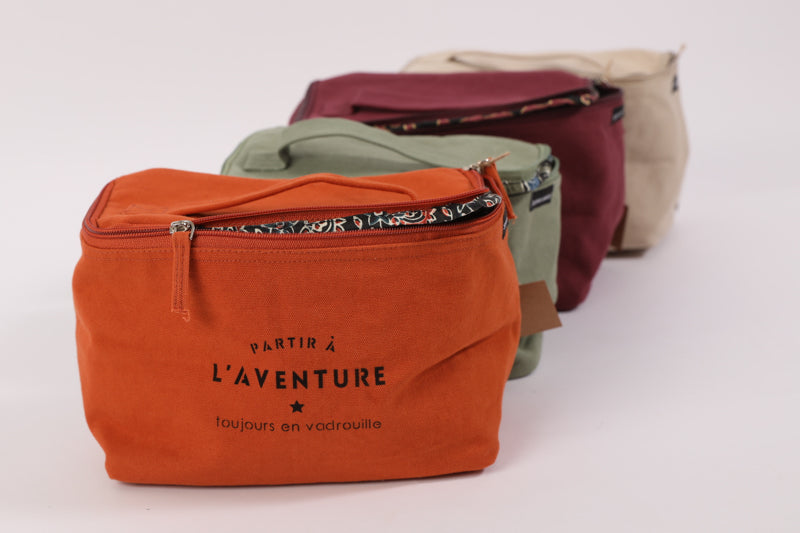 Vanity en coton avec fermeture éclair et doublure en Jaipur. Un petit compartiment pour vos objets de toilette, idéal pour partir en week-end.